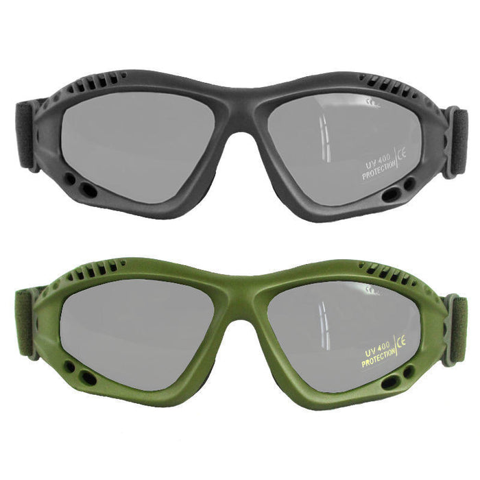 These quality Commando Air-Pro goggles feature soft foam lining inside the frame to ensure a perfect and comfortable fit. A curved shape that guarantees complete protection of the entire eye area. Moreover, thanks to its adjustable elastic strap the goggles go perfectly with a helmet. Perfect for tactical games.