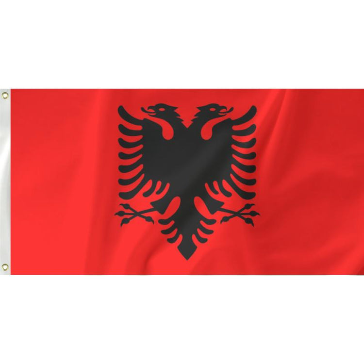 The flag of Albania has a very bold red background representing bravery, strength and valor. The double headed eagle represents the sovereign state of Albania. It has had some tweaks over the last century but the base flag was established when Albania gained independence from the Ottoman Empire in 1912.