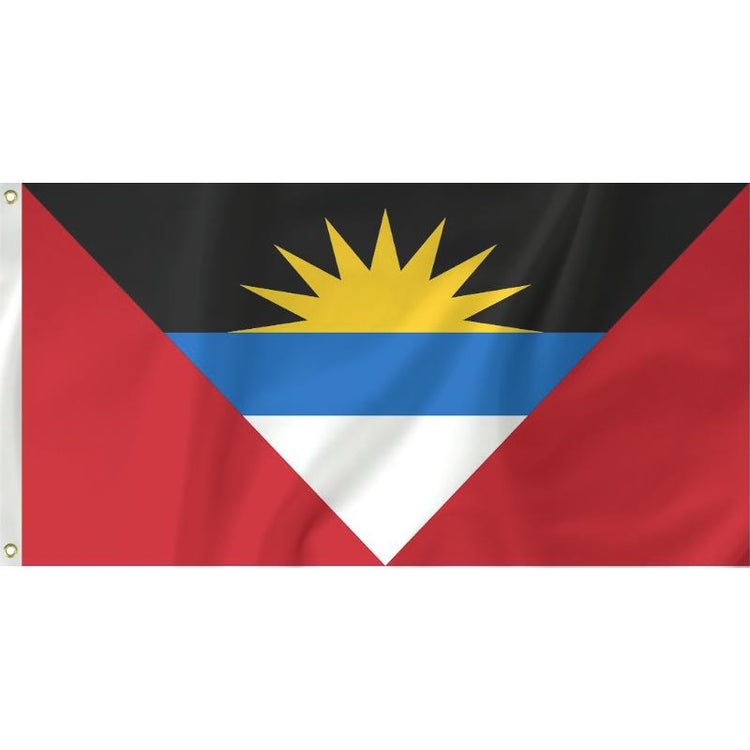 Introduced in 1967, the flag of Antigua and Barbuda came into being with the achievement of self governance. The V shape is for victory and the different shades within it representing the Caribbean Sea. The black area represents the African ancestry of the country and the red colour for energy of the people.