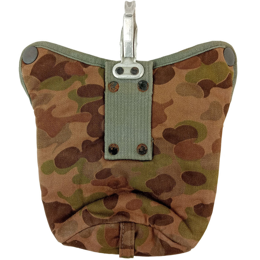 Thick, camouflaged canteen cover from Das Österreichische Bundesheer, the Austrian Armed Forces. A really sturdy little thing, with a strong clip to keep your hydration at hand and the thick cover will help insulate your canteen. Best of all - in Austrian ''pea dot'' Kampfanzug. Introduced from 1957 and used sporadically until around the mid 1970's, a few modifications to the camouflage pattern were made over it's history, present in this batch of surplus. Like peas in a pod, pair these with the Austrian canteen and stay hydrated.