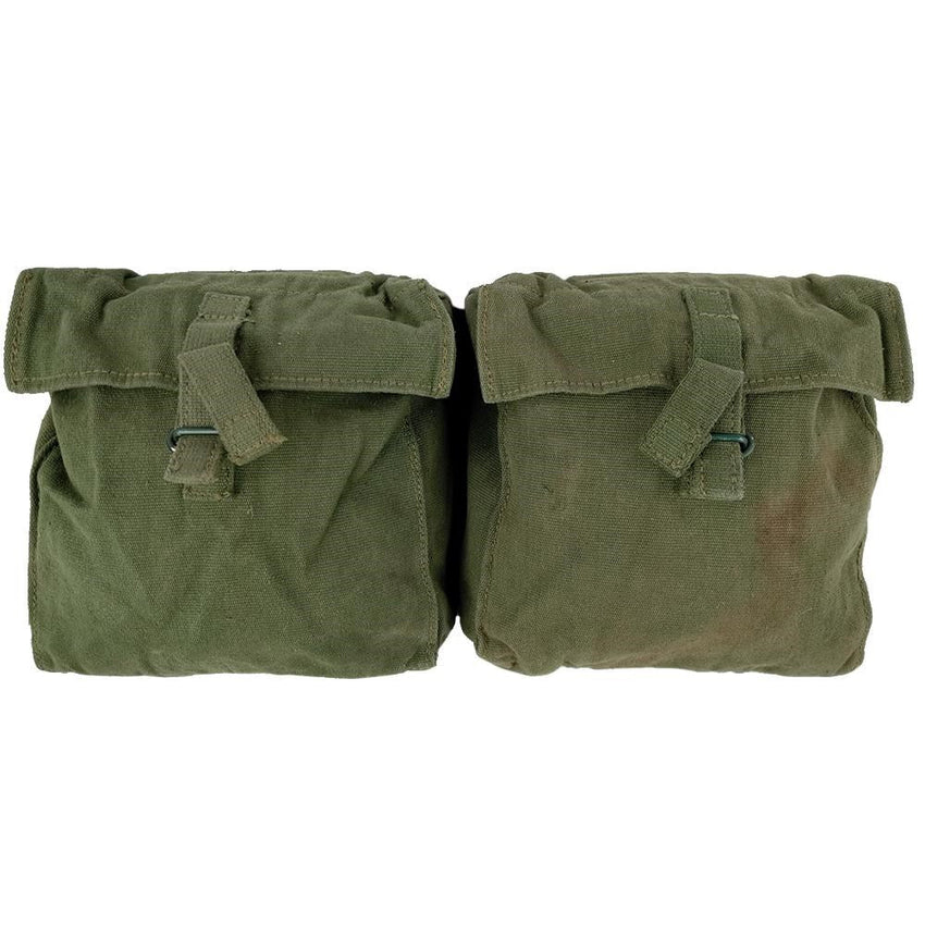 Made from thick cotton canvas, these are pretty dam robust. Each pouch is opened with a quick pull tab to access one large main compartment. On the rear of the pouches is a series of straps, rings and clips to secure them to the rest of the webbing system. For those who love anything Falklands kit or the likes, a set of these is a must. Grab a set for airsoft, long range hunting, or the ol' militaria collection.
