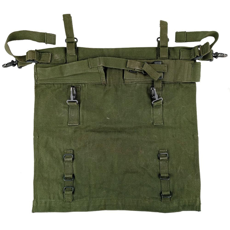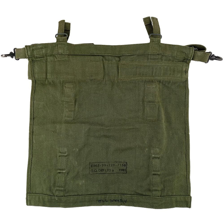 Built from tough cotton canvas these will protect your precious 58 pat poncho when crawling through the scrub. Quick release tabs allow for you to unroll the pouch quickly and retrieve your poncho ASAP in the event of rain. A pair of metal clips enables you to attach this to the bottom of a 58 pat web set. Another wee feature is a pouch you can externally store a pick head minus the stick. For those who love anything Falklands kit or the likes, a set of these is a must. Grab a set for airsoft, long range hunting, or for the ol' militaria collection.
