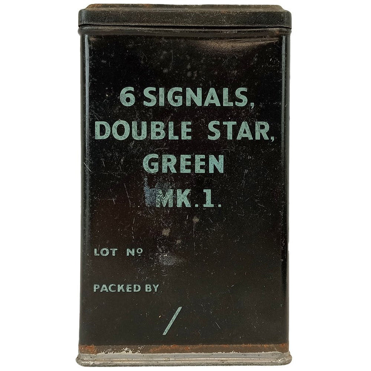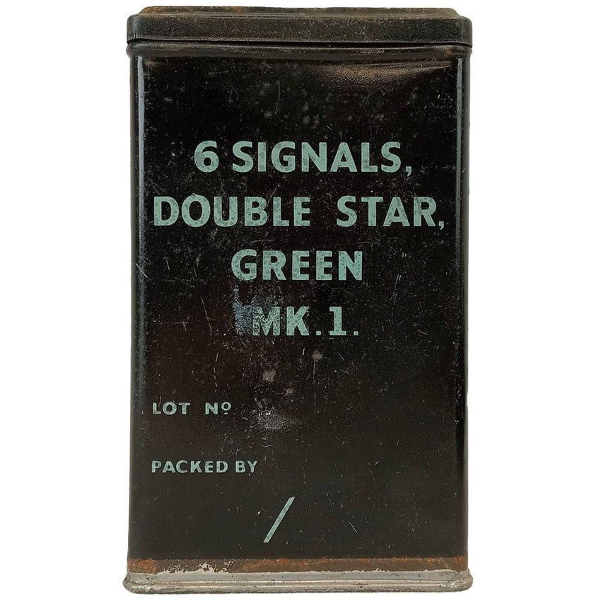 A commonly looked over aspect of warfare is communication. The allies became masters of communicating with advanced technologies however even much more utilitarian tools had their uses - flares. The Brits & commonwealth were issued these tins that used to contain a set of 6 flares. Each box would have a coloured star at the top to tell the user which colour they would be lighting up. They also have different markings according to colour imprinted on them so you can feel at night which colour you are handling (cross for red, circle for yellow, triangle for green). Originally these would be somewhat water tight, although with age and use this is probably not fully the case for all of them.
