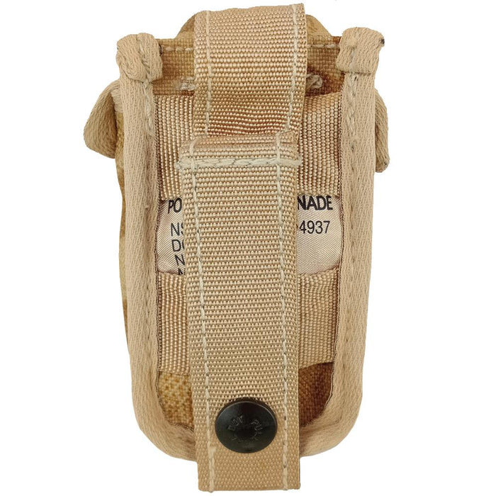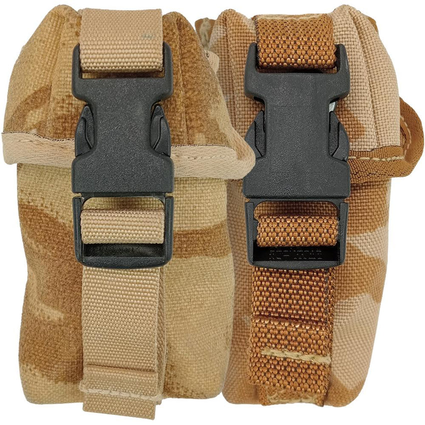 Start thumping away with one of these British 40mm rifle grenade pouches! Both snap dome and/or clip closure, you can keep your frags secure especially important with airborne operations. MOLLE backing allows you slap one of these on any tactical surface wherever you need it. Made from tough nylon coated in awesome desert DPM camouflage.