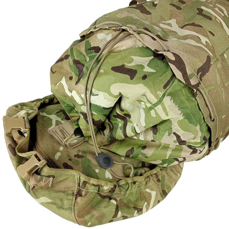 Good ole British can't stop with the big rucks. The 70L main compartment has pockets to the front, top lid + underside of lid. Simple! This is the short back version - for people around 160-173cm (5'3'' - 5'8''), but some may find the shorter length is easier to wear with webbing. This pack is designed to accommodate two side pouches, so chuck them on if you have them and need a storage boost! With plenty of life left, this ruck is ready to bash bush and would be a great addition for a hunter, hiker or anyone ferrying around gear.