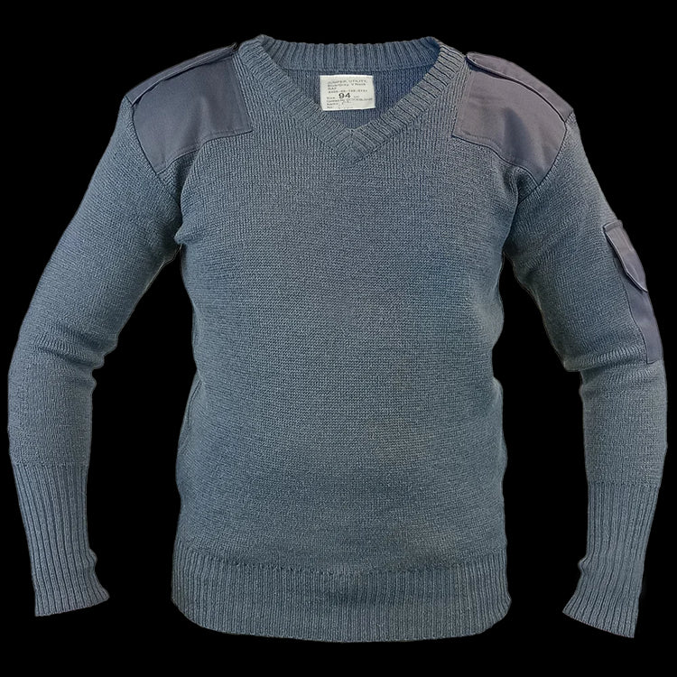 Cant let the Navy and Army have all the goods, the British Royal Airforce has a wool blend jersey too! These ''Utility'' versions do not have the wide ribbing weave like the commando style, but with a nylon blend, they are still nice and form conforming. These are RAF blue too of course, which is kind of like a dirty sky blue - though somewhat inconsistent (see last image for an example of blues). The reinforced areas are really the only hint that this cosy jersey wasn't originally for the general public but it still blends in to civilian life just fine.