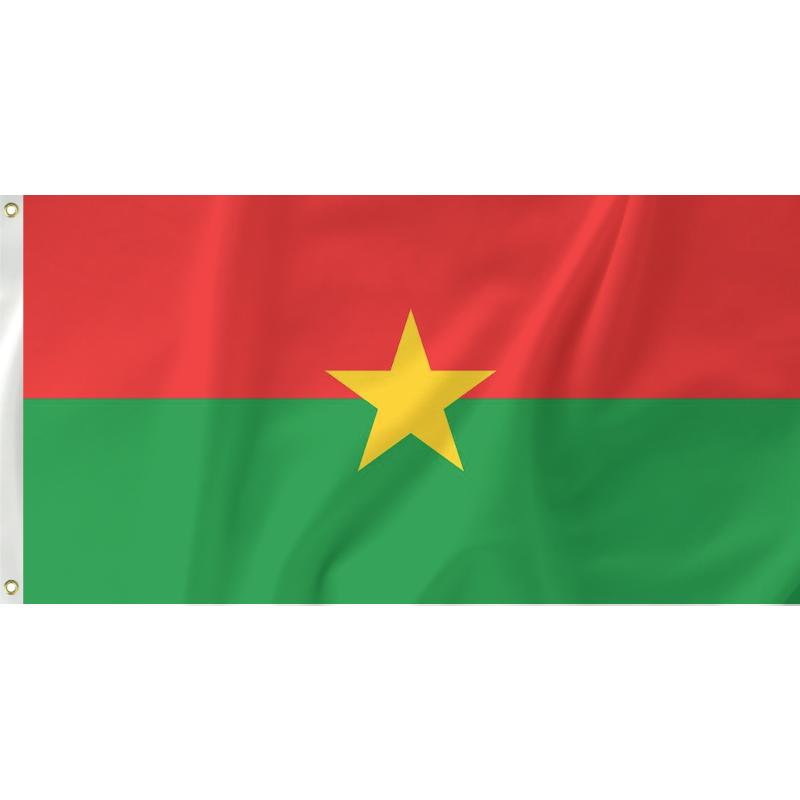Featuring the popular Pan-African colours, Burkina Faso adopted their flag in 1984. Burkina Faso broke ties visually with their new flag from their German colonists and shows their solidarity with other African ex-colony's. The red is said to symbolize the revolution and the green symbolizes the abundance of natural riches. The yellow star is said to be the guiding light of the revolution.