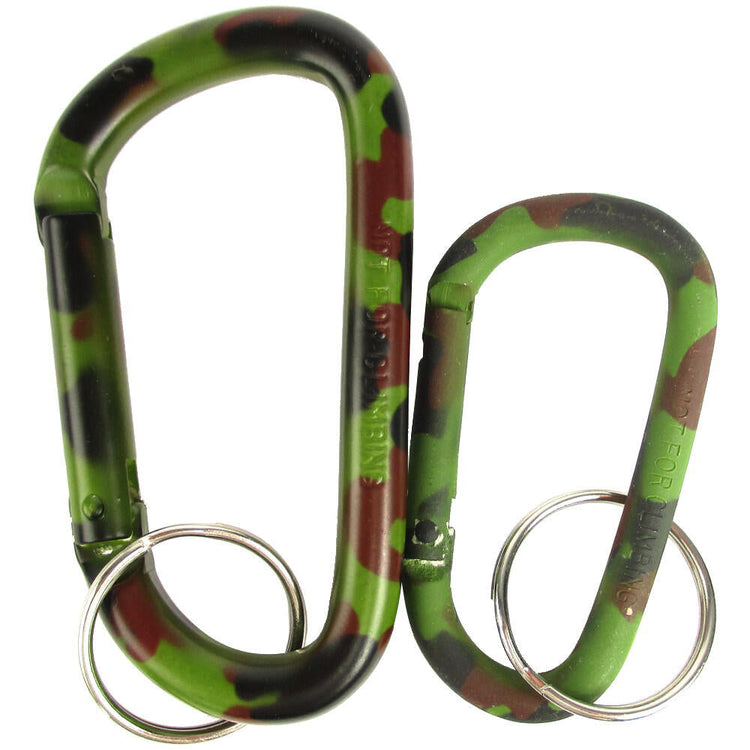 Handy Camo aluminium carabiner clips. Ideal for securing things quickly to your rucksack.