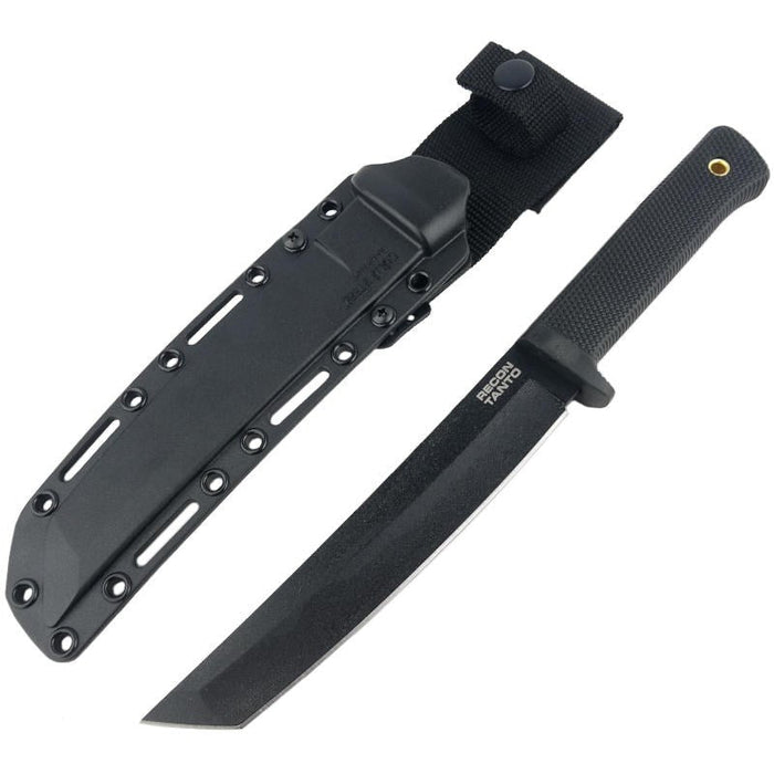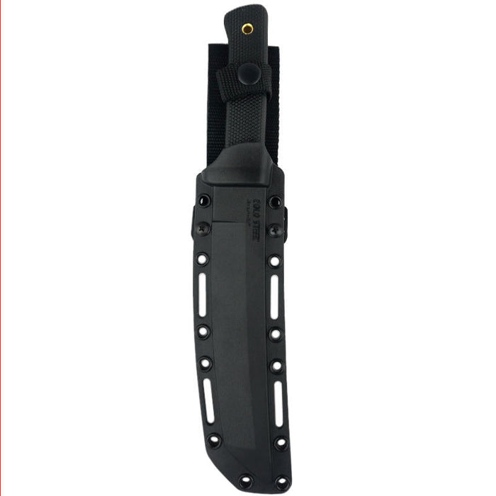 Cold Steel have produced these fantastic quality tanto knives. Made from tough SK-5 high carbon steel 5mm thick, they have a great balance of toughness & edge holding quality. The blade is finished with a black Tuff-Ex coating to keep the blade protected. The handle has a solid grooves and a slightly rubberized surface to keep a steady grip. All complete in a Secure Ex sheath which you can mount on your belt.
