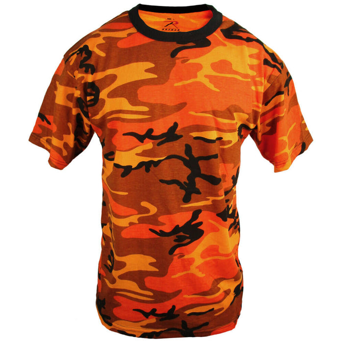 These orange colour camo t-shirts are perfect for summer. From Military Use, Airsoft Teams And Everyday Fashion; These Shirts Are Worn By Everyone. These comfortable camo t-shirts feature a poly/cotton blend for comfort and durability and tagless label to avoid that 'scratchy label' feeling from the regular sewn on variety.