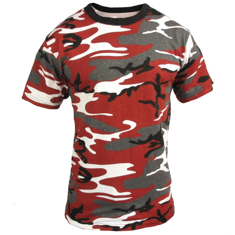 These red colour camo t-shirts are perfect for summer. From Military Use, Airsoft Teams And Everyday Fashion; These Shirts Are Worn By Everyone. These comfortable camo t-shirts feature a poly/cotton blend for comfort and durability and tagless label to avoid that 'scratchy label' feeling from the regular sewn on variety.