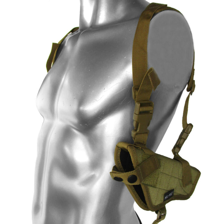 Take your handgun storage to the next level with this tactical Cordura shoulder holster. This adjustable and versatile shoulder holster is a great pick for airsofters and the like. Designed to hold two handgun magazines on the right side and your weapon on the left. Featuring three military style colours and belt loop attachment points for security.