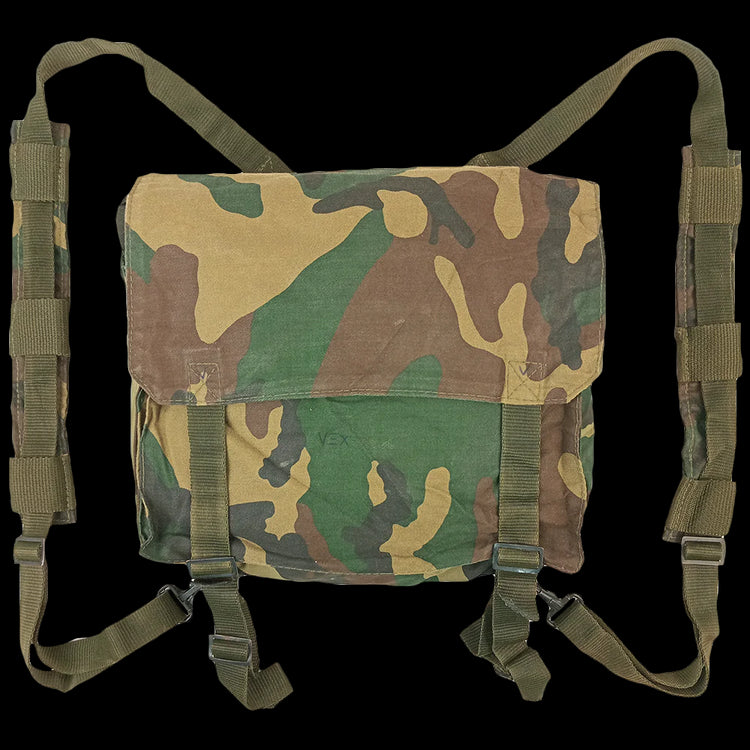 More Croatian carrying capacity, you say? Well these wee packs are a new one for us. Kind of like a hybrid between a few of the others we get in, though these have a deployable pouch. This could be handy to stash your windbreaker or stack of tactical cheeseburgers - something reasonably sized but want fast access to. As usual with Croatian woodland camouflage, the colours are variable and they are fairly musty, so give them a wash and away you go.