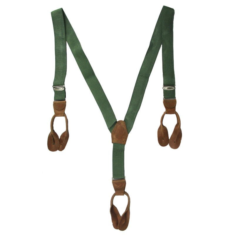 Here we have some authentic Cold War era Czech Army suspenders. Made from elastic and a tough artificial leather, these Y-shape suspenders attach onto buttoned pants. The front straps are fully adjustable - These will not only keep your trousers up but do it in style!