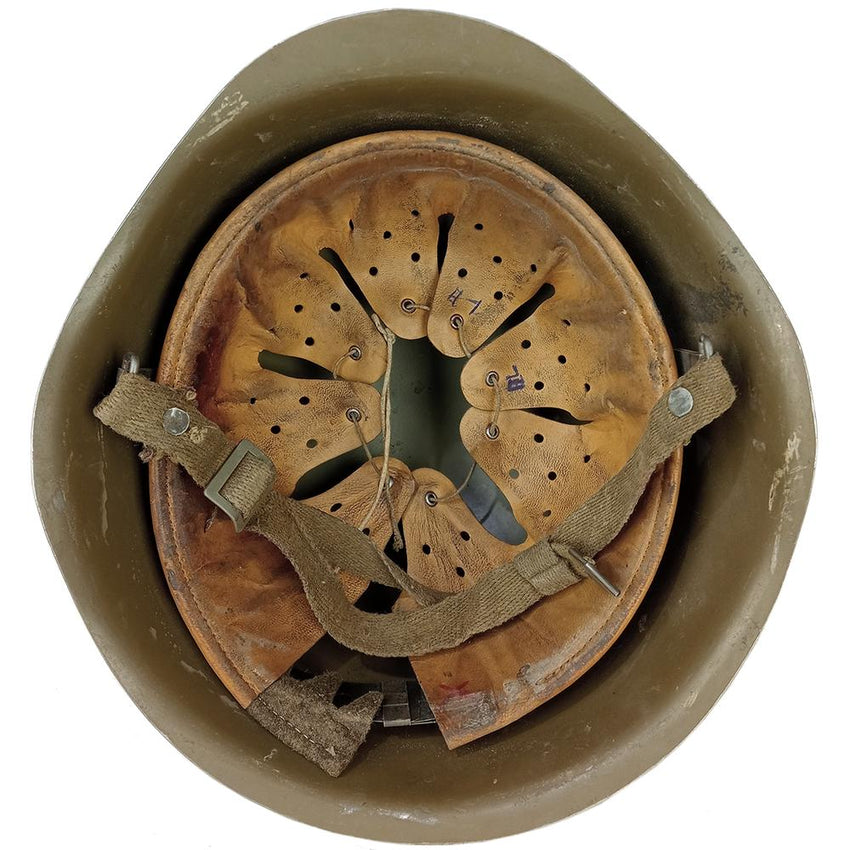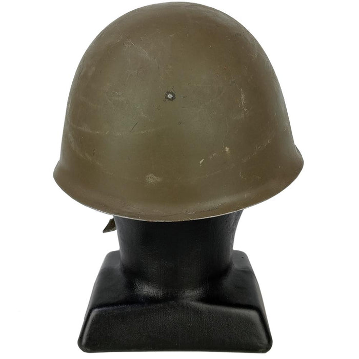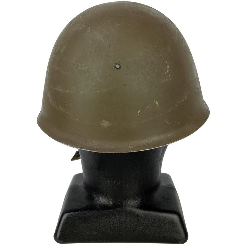 Back in the day, steel was the best form of protection from artillery rounds and flying debris. Czechoslovakian soldiers were issued this solid steel helmet during the Cold War era. Almost identical in shape to the Russian SSH40 helmet but with a different liner. The M52 has a leather liner and cotton chin strap. Painted in Warsaw Pact olive drab. Get yourself a piece of Czech Army history with this helmet.