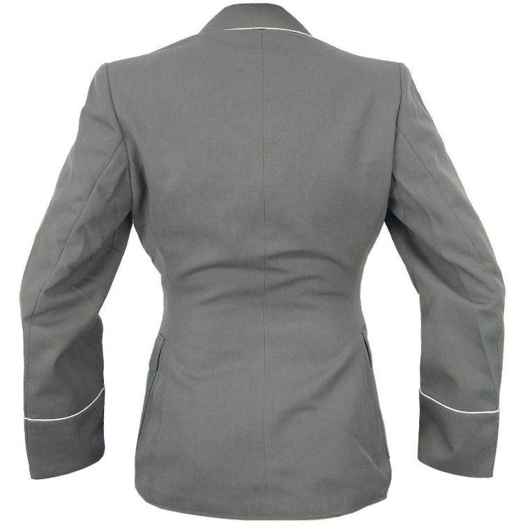 Button up front, hemmed in sides, cuff & collar piping - what's not to like? Although mostly for looks, the jacket is functional as well. Buttoned chest & waist pockets along with a inner chest pocket for stashing that hit flask. The shoulders also have attachment points for adding rank epaulettes. Definitely a must for DDR collectors or potentially a very cheap dress jacket with some minor modifications. Get one today before they are gone forever!