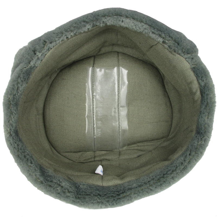 Genuine East German (German Democratic Republic) Army issue ushanka. The war was cold and so was the winter air. Troops would wear these warm ushankas to protect their head, ears, and chin from the cold. The faux fur (or fish fur) ear flaps can be buttoned under the chin or tied back, ski-style. These remained as part of the winter German Police uniform after the reunification of Germany.