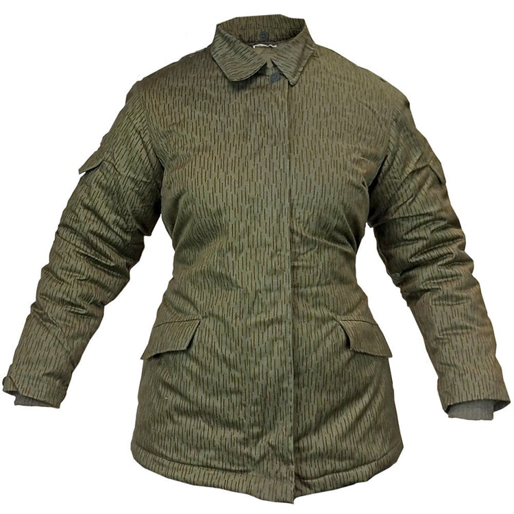 Snug in strichtarn, these jackets are what East German soldiers were issued for winter. With a smooth polyester lining and padded polyamide layer inside, these will keep you warm. The cuffs are elasticated so they can trap any body heat generated. An extra add on feature is the collar - these have internal buttons so you can attach a big fur collar much like their Soviet overlords style (fur collar not included). The outside is made from a rugged cotton exterior and complete in the iconic strichtarn/strichmuster camouflage.