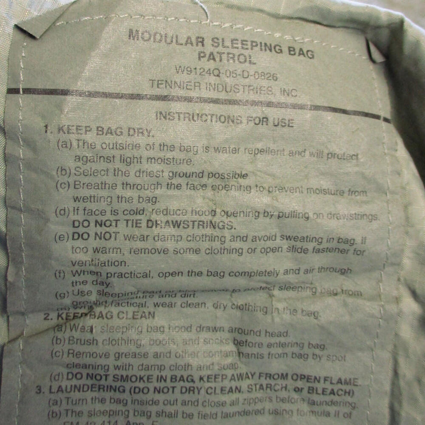 This patrol bag is the lighter of the two sleeping bags from the ECWS and is intended for warmer temperatures. The double zip can be pulled from both ends, allowing ventilation from the top or bottom. An adjustable drawstring around the hood helps retain heat within the sleeping bag. The construction is a water resistant, ripstop nylon fabric.