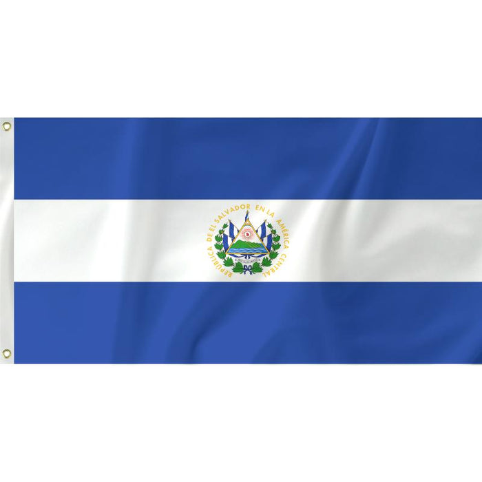 El Salvador adopted their current flag in 1912, shortly before the Great War. The royal blue represents the great sky and the two oceans of Central America. The white represents peace, harmony and solidarity with the world. In the centre of the flag is the El Salvador coat of arms.