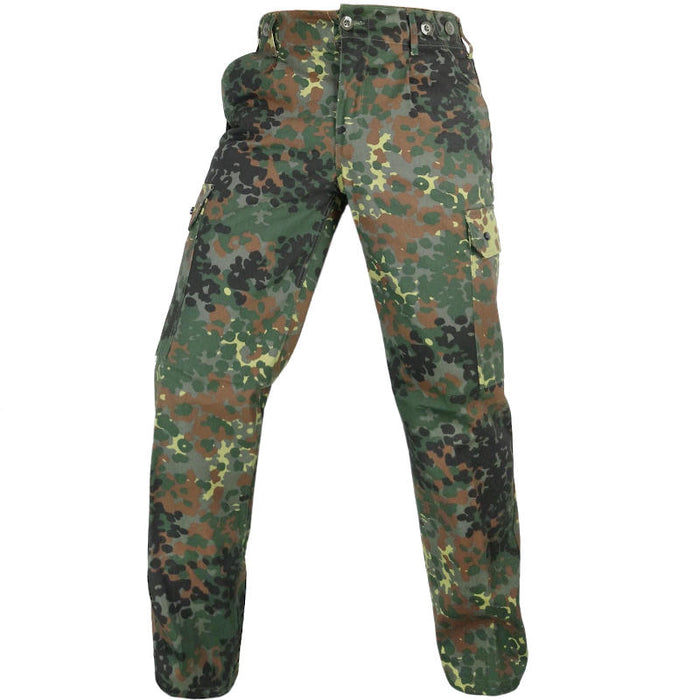 Flecktarn is a popular German camouflage pattern in Army surplus. With these trousers, you don't have to deal with second hand clothing if you want Flecktarn camo. These have the benefit of being brand new from the manufacturer, no wear or tear. Wrapped in an authentic Flecktarn camouflage replication that is very close to the original. The durable material and stylish design make these trousers perfect for outdoor activities such as paintball, hunting, and airsoft.