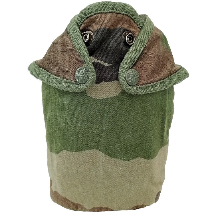 Love CE camouflage, building a French kit or just want something to hold your canteen? Pick up a French Centre Europe camouflage 1L canteen cover. They have four snap domes to the front to fit your canteen and to the back is a M1910 style wire hook and webbing to pass a belt through. The insulated interiors are various kinds of felted material (likely wool, see last image) and will help keep your flask cool.