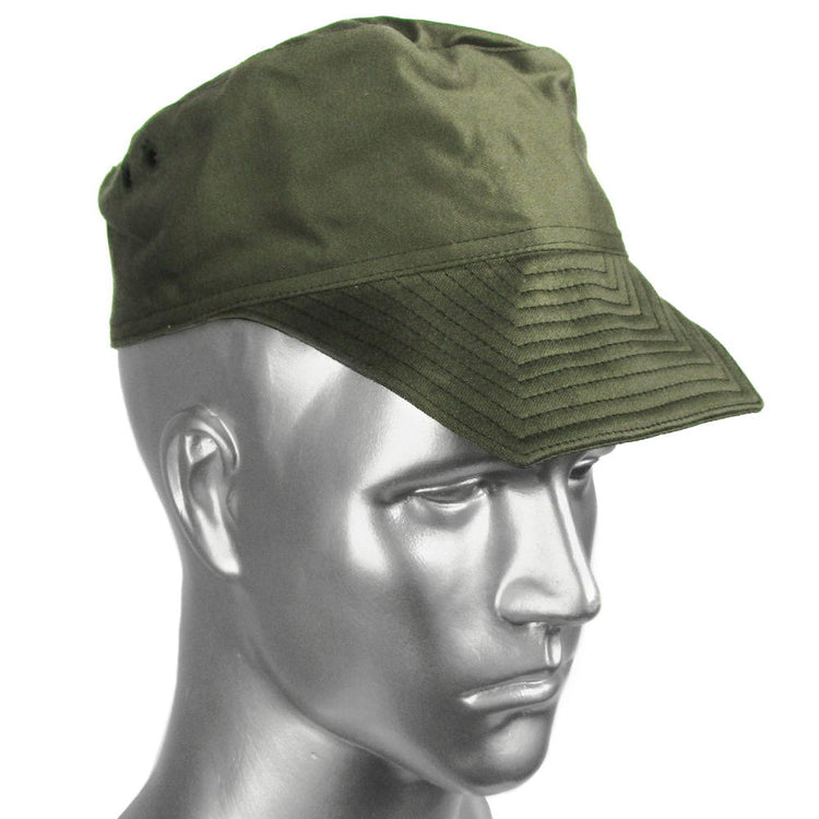 A traditional French Military peaked cap with a square cut visor. These hats pre-date the CCE camouflage pattern, back in the 70's and 80's when the French Army was clad in olive green. Soft comfortable fabric with a classic look and feel. Dated between the 1970's and '80's. A practical piece of head wear that is great for a vintage look in a modern world.