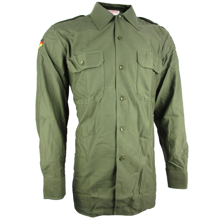 These German army combat shirts are always a popular pick. They blend style and quality all into one fantastic genuine issue shirt. Featuring two large chest pockets, adjustable cuffs, solid collar and German flag badges on each arms. Perfect as everyday wear, a paintball/airsoft shirt and reenactment gear.