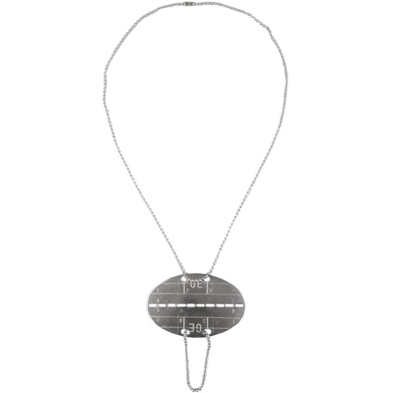 Both top & bottom details mirror each other as it is designed to be snapped into 2 pieces - one for the morgue/corpse identification, the other for notification. The top has a long ball chain to wear around the neck and the bottom has a small ball chain for either attaching to a toe or adding other tags together.