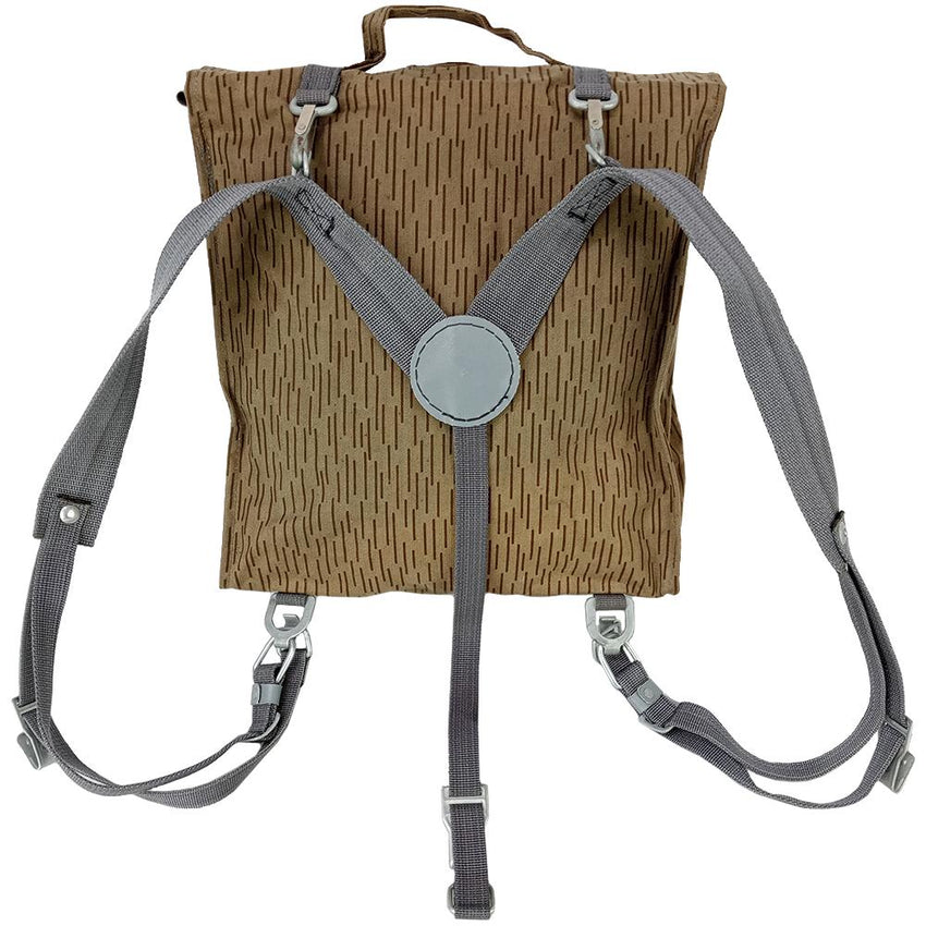 These packs were originally designed to integrate with East German Y-straps as part of their webbing. These ones might not have the complete web belt and webbing system, but they do come with the Y-straps. These can be utilized to form a hasty stand alone pack (especially if you are willing to crimp the metal clips in place) or when paired with a second one they make for great saddle bags on a bicycle. Dual straps secure the top flap firmly in place with internal flaps to reduce any spillage.
