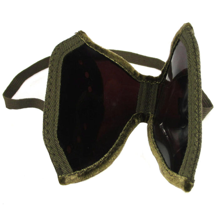 An adjustable elastic strap allows the goggles to fit over most sized heads while the soft velvet frame sits comfortably around your eyes. The dark tinted lenses are ideal for reducing bright sunlight. Whether you're needing a practical pair of goggles to keep the dust out, you're a collector, or you like getting weird looks in public, these are the goggles for you!