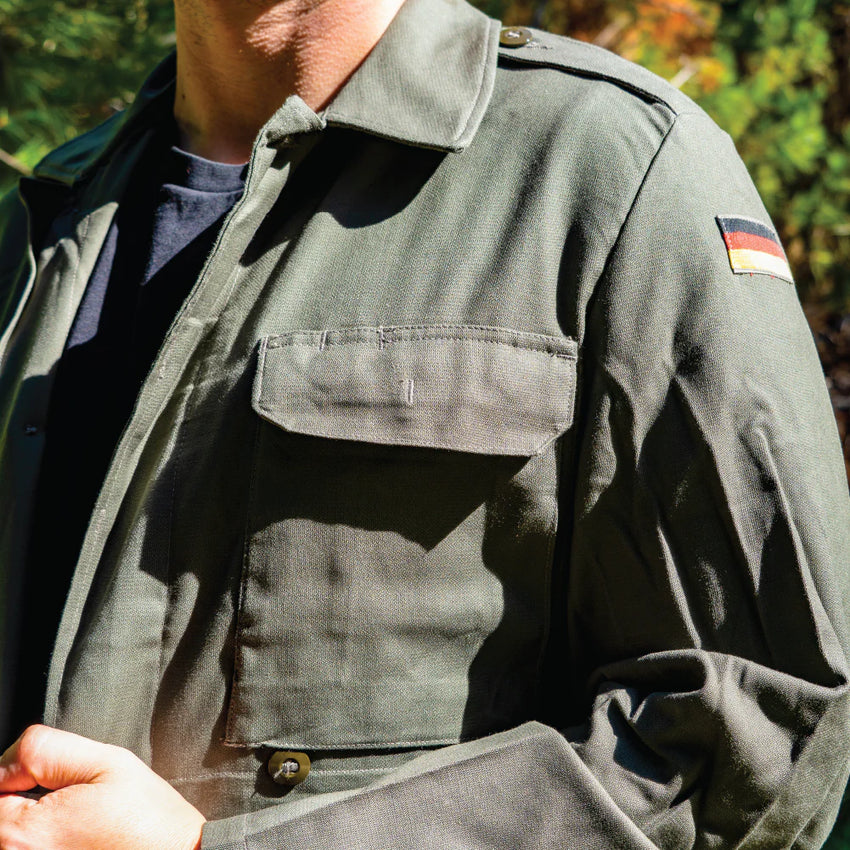 The German army supplied these shirts to soldiers from 1965 to 1990, which shows how reliable and durable they are. They're made from a quality moleskin material that is highly abrasion resistant and as a ''field jacket'', these are great worn as a heavy shirt or mid season outer layer. This design and material were an easy choice for the Germans airforce and navy uniforms too. The moleskin uniform was eventually replaced by the now iconic Flecktarn camouflage.