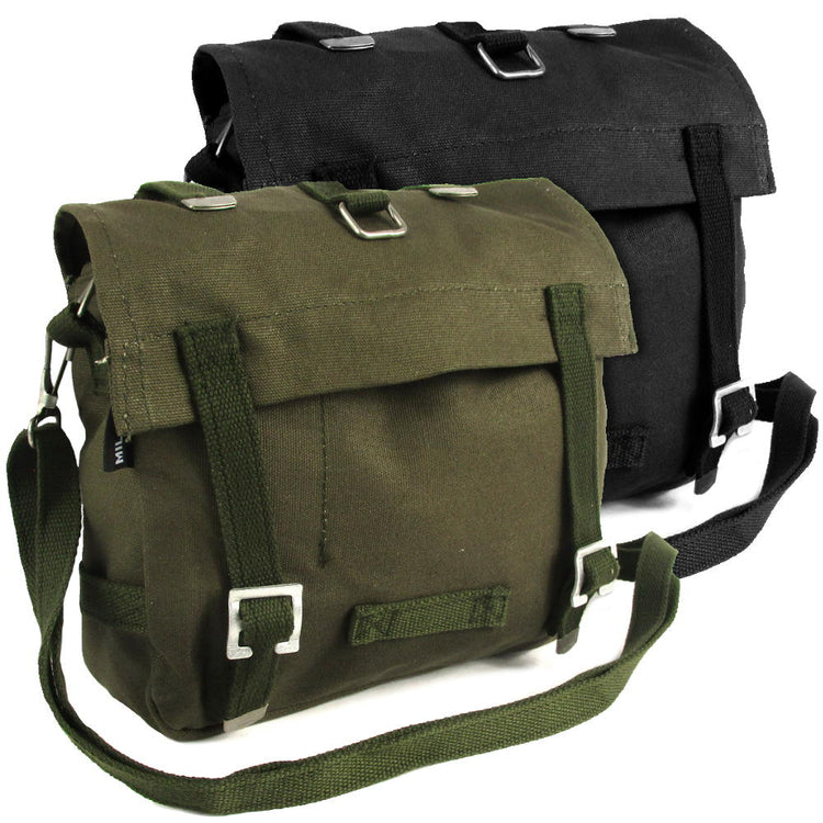 Originally, bread bags were used to carry German soldier's rations out in the field, which was mainly comprised of bread (hence the name) but can now be used in a variety of ways. This replication of the WWII era bag benefits from a modern construction and materials. Great bag for students for its size and weight. This canvas bag has 3 internal compartments, a fully adjustable shoulder strap and straps on the back for attaching to a belt.