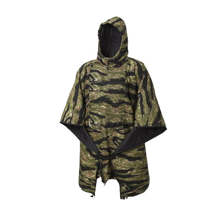 Fully unzipped and spread out on the grass, the Swagman also serves as a blanket. It's just as large but much lighter and takes up much less space when packed. Whether it's taken on a traditional bushcraft trip or a picnic in the park, its internal Climashield Apex® insulation will provide protection and thermal comfort. The interior of the tent becomes cozier too after being lined with our poncho.