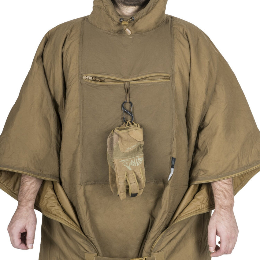 - Fast clip for closer fit of poncho across the body, adding warmth