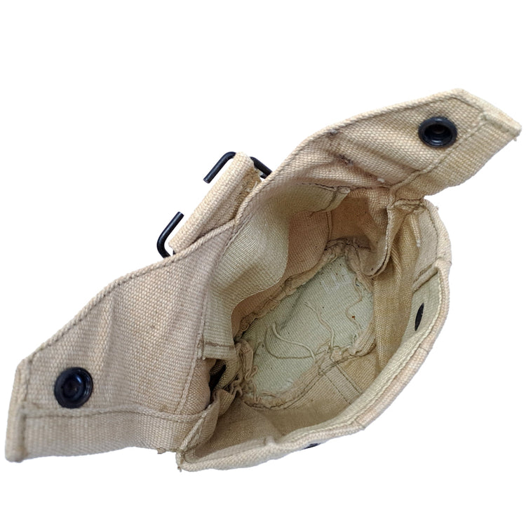 Iraqi P44 style canteen pouch. This design was part of Iraq's copy of the British P44 webbing in a Tan colouration introduced in the 1970's.