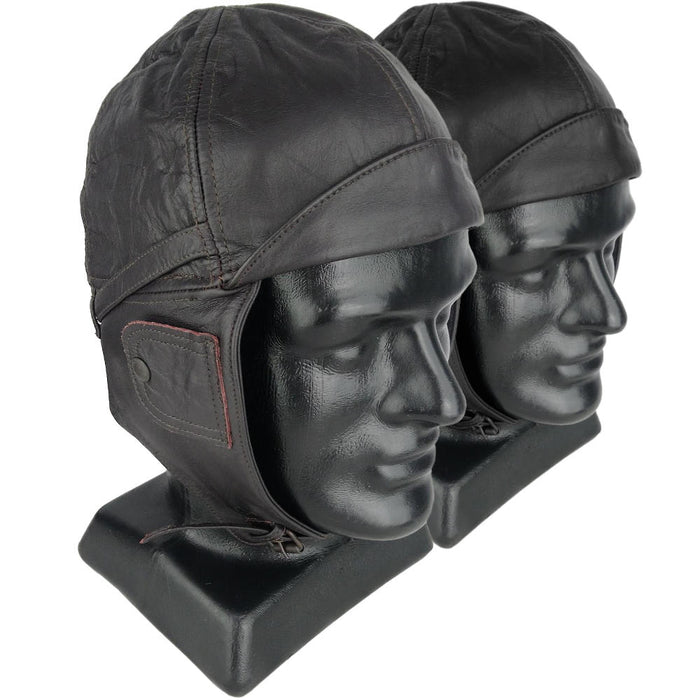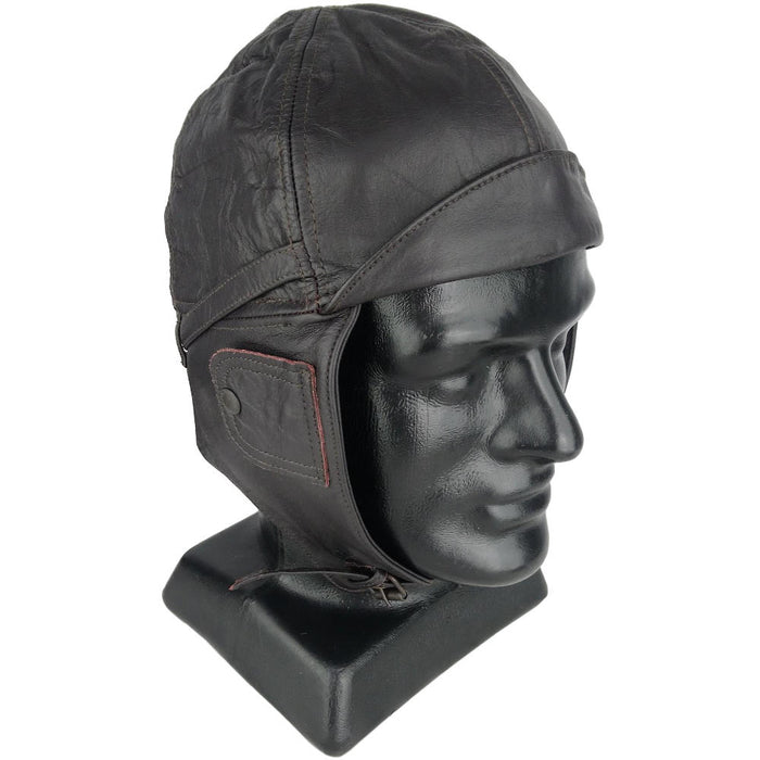 Sturdy and stylish, this leather aviator helmet is everything you need in a piece of headwear. A must have if you have a convertible sports car, or vintage aircraft. The external layer is made from real cow leather and the internal layer is made with a comfortable cotton lining. There is an adjustable rear head strap, so don't be afraid to order one slightly bigger than your normal head size as you can adjust the retention. The 'helmet' can easily be worn with or without the chin strap buckled (as long as your not airborne) and comes with snap dome secured ear flaps.