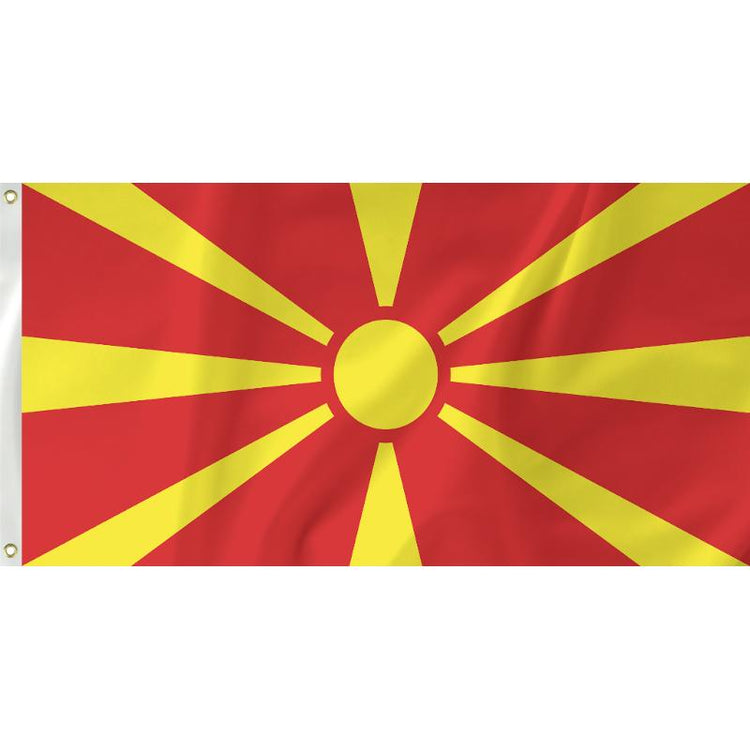 The flag of Macedonia was adopted in 1995 after a dispute with Greece. Macedonia had adopted a new flag baring another sun design which was taken from an ancient source in Aigai. Greece considered the Vergina sun to be a Greek symbol. Greece started a year-long economic embargo to pressure Macedonia to remove the symbol from its flag which resulted in the current design.