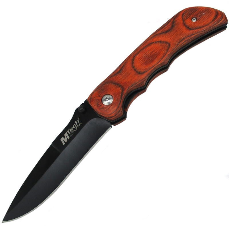 If you need a knife for your everyday carry to aid you in your daily tasks and look great - these MTech knives are for you. Compact, the stainless steel blade unfolds and locks in place firmly with a liner lock. A small lever can be easily used to fold it back down. The wooden grips have smooth contoured grooves to fit in your hand comfortably and look smart. The knife also comes with a removable clip if you wish to mount it on a belt.