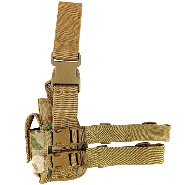 Looking for a ergonomic drop leg holster for airsoft? With adjustable drop leg height, thigh straps & retention strap, you can adapt the holster for a wide array of pistol types/fit. An affordable jack of all trades, master of none holster. An ideal entry point for airsoft or those who like to collect too many pistol types!