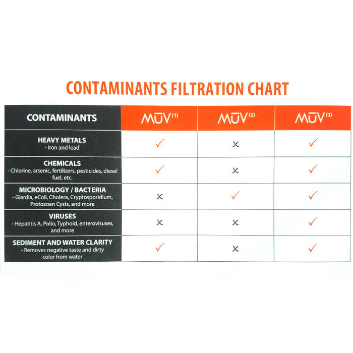 - MUV2 Hollow fiber filter removes bacteria, protozoa & parasites