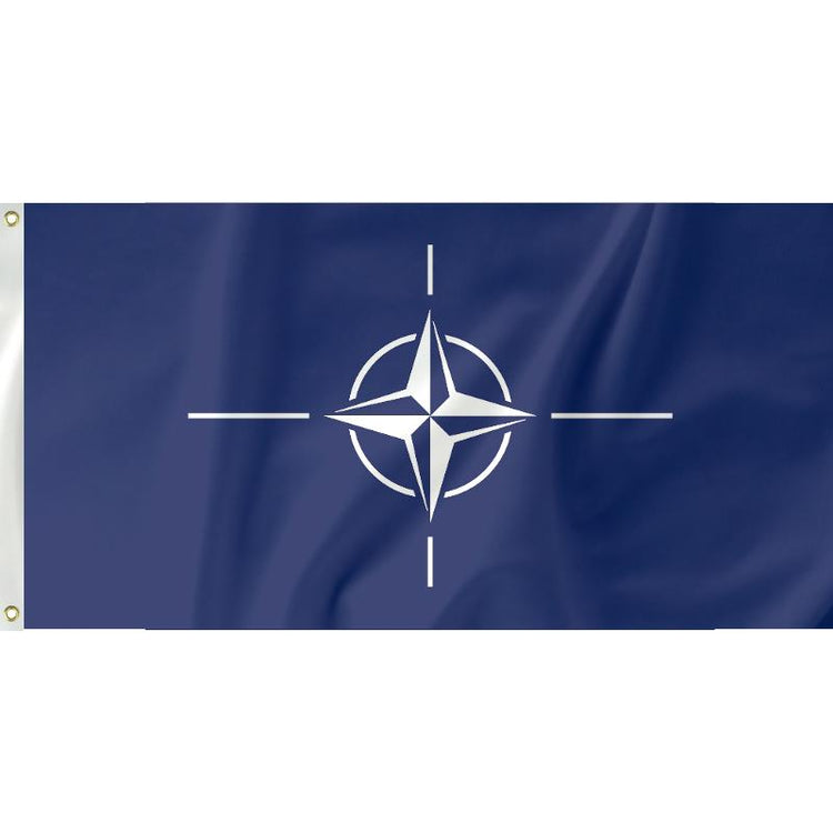 NATO adopted this flag in 1953, four years after forming. The white circle stands for unity and the blue represents the Atlantic Ocean.