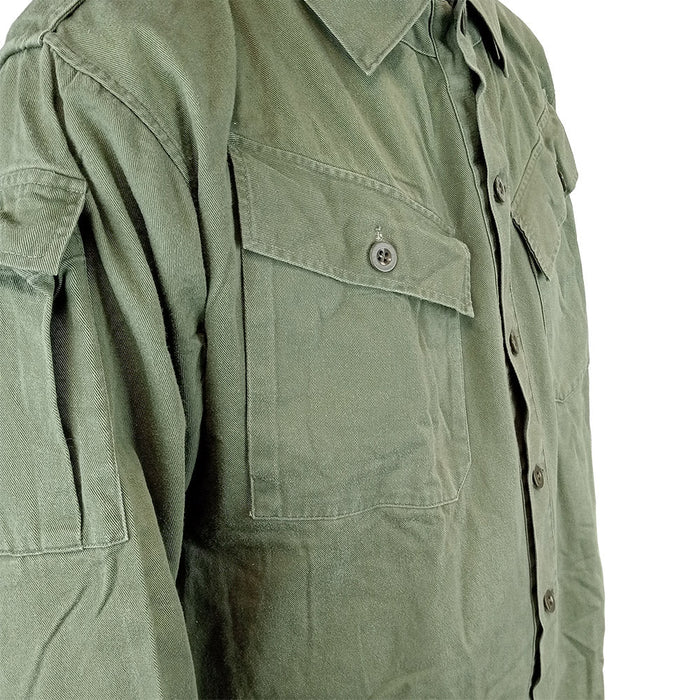 The pixie shirt was designed to be worn tucked in or untucked, to allow for varying ventilation in the Vietnamese climate. This shirt is still surprisingly heavy for a jungle uniform and made of cotton drill. Reinforcing over the shoulders to the back, pockets to the upper sleeves and slanted chest pockets are all the utility this shirt needs! An uncommon piece of Aotearoa militaria that showcases the influence of British, Australian and American uniform design on a shirt needed to keep up with the times and conflict environment. Get your mitts on this esoteric collectable!