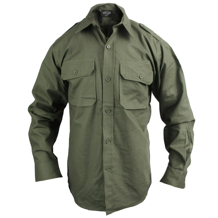 This field shirt (some may call it a general service shirt) is a good all round shirt for general use. The 100% cotton ripstop fabric is lighter in weight than many non-ripstop field shirts and will perform better in warmer temperatures. It could be worn by itself, under a field jacket, or as part of a formal attire.
