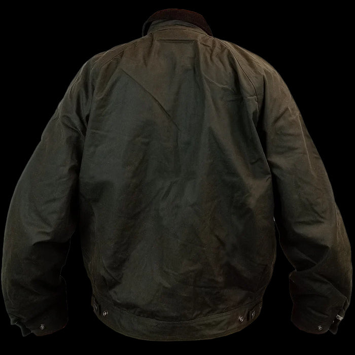 Cotton oil treated 'skin' waterproofs the exterior shell keeping you from soaking through while doing the hard yards. A simple full length zip provides easy donning along with a snap domed storm flap to seal water out. A couple of slash pockets to keep a wallet or phone in provides you a simple amount of storage - oh, and a zipped inner chest pocket to hide away your valuables. A cozy cotton corduroy collar and inner cuff paired with a smart patterned inner lining are both a nice touch for looks & comfort.