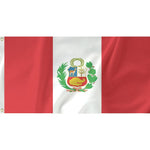 Peru adopted their flag in 1824 and the current was slightly modified in 1950. The flag sports a white strip in the middle flanked by two red strips. The red stands for the blood that was spilled for the country and the white represents peace. Peru's coat of arms is featured in the centre of the flag.