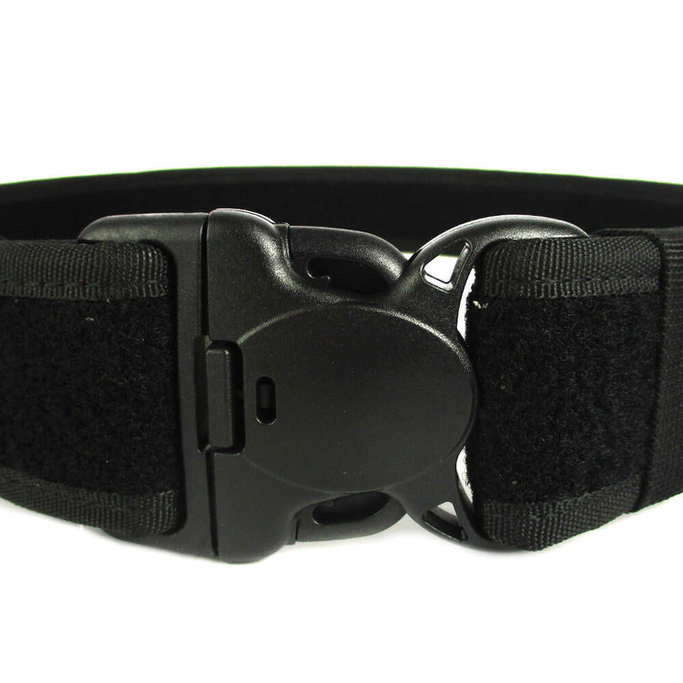 You need a serious belt for serious work. This security belt has a rigid polyester construction to securely hold pouches and equipment around your waist. The interior features a hook & loop strip to keep the adjustable buckle in place. Never accidentally un-clip your belt again with the three-point release buckle mechanism. This belt is ideal for security guards or others in a similar line of work.