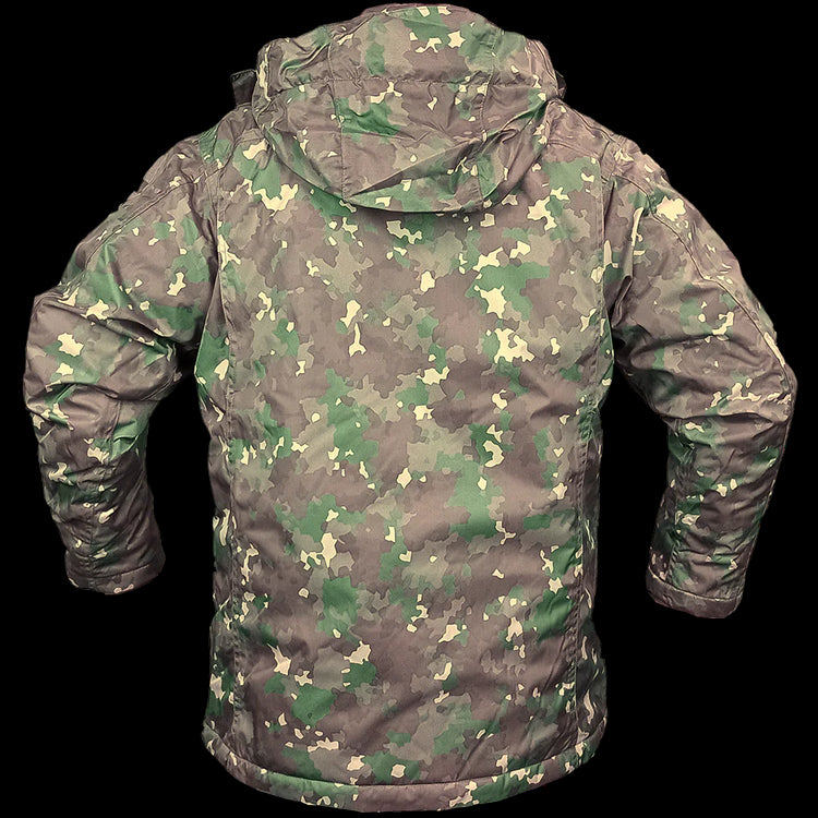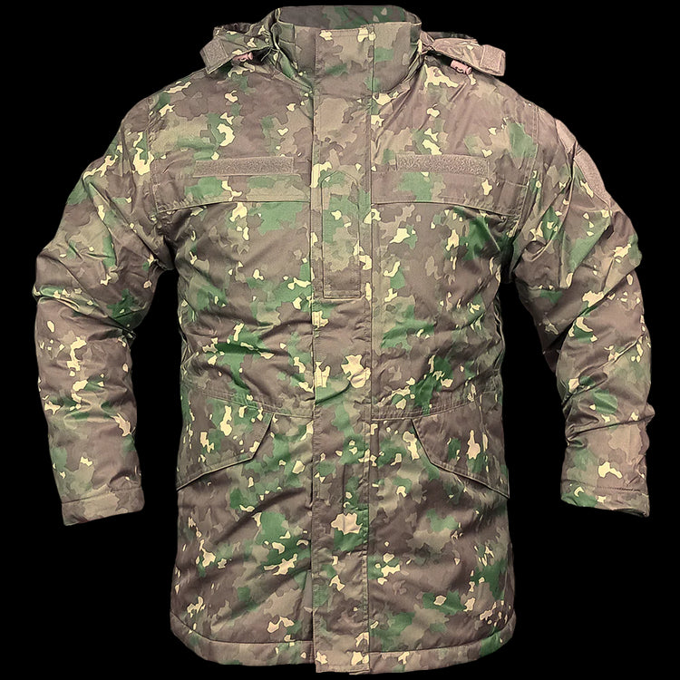 These Romanian jackets have a surprising amount of loft for overall weight. Combined with a quilted and fuzzy fleece lining to the upper torso, these keep you nice and toasty. Snow and rain are repelled by the water resistant exterior and an interior snow skirt keeps that stuff out from underneath. If you're in for a cold and wet winter, heard the magnificence of these jackets or just love that funky Romanian camo, these are for you.