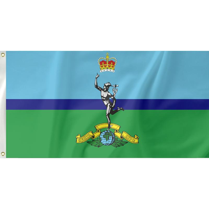 Show your support for the Royal Signal Corps with this distinctive flag. Completed with metal eyelets on the left side to attach to flag poles . Measuring 155cm x 90cm it will fit nicely in your house or workplace. Show your dedication and pick up a flag today!