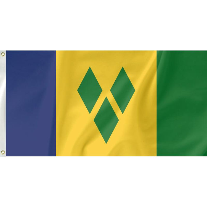 Show your support for Saint Vincent, with this nylon flag. 155cm x 90cm is the perfect size for hanging in your house or workplace. Eyelets at the top and bottom of the left side allow you to attach to flag poles if you happen to have one lying around. With our wide range of flags, you'll be sure to find something to fill your personal space.
